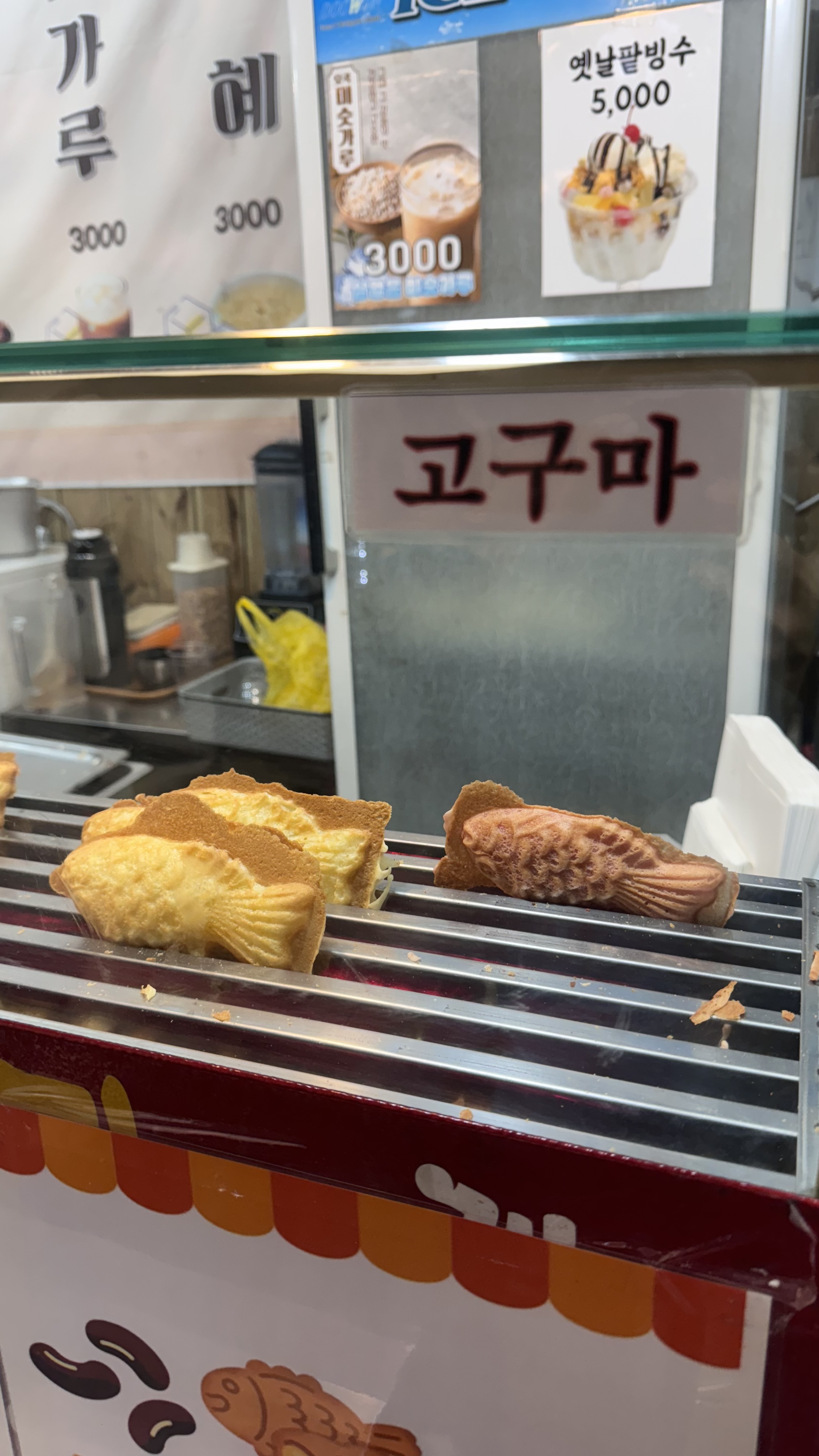 대기 걸어두고 망원시장에서 애피타이저로 붕어빵과 매운어묵으로 허기를 달래 봅니다.
