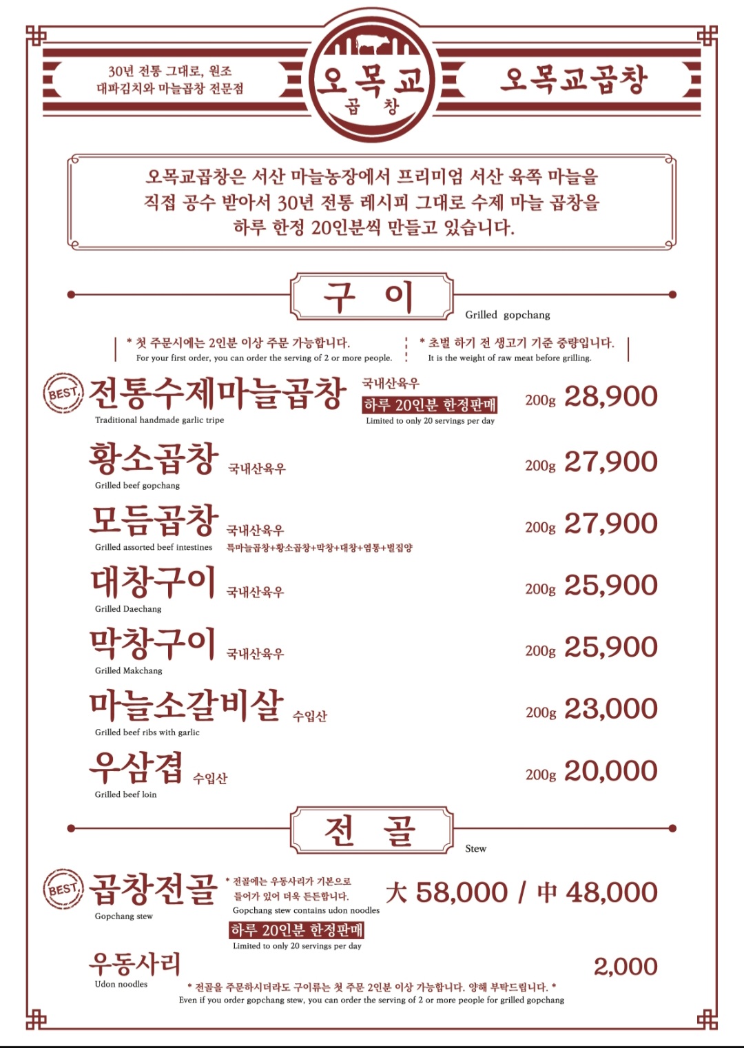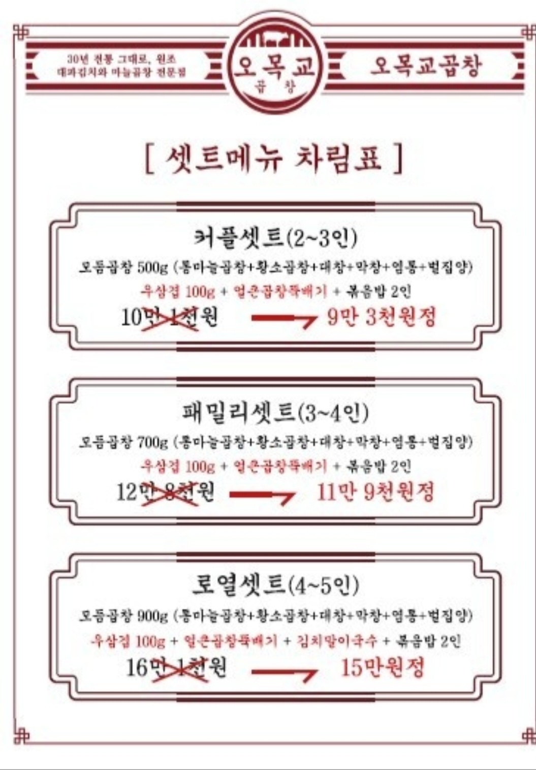 (통마늘 곱창+황소곱창+대창+막창+염통+벌집양, 우삼겹, 얼큰 곱창뚝배기, 볶음밥)