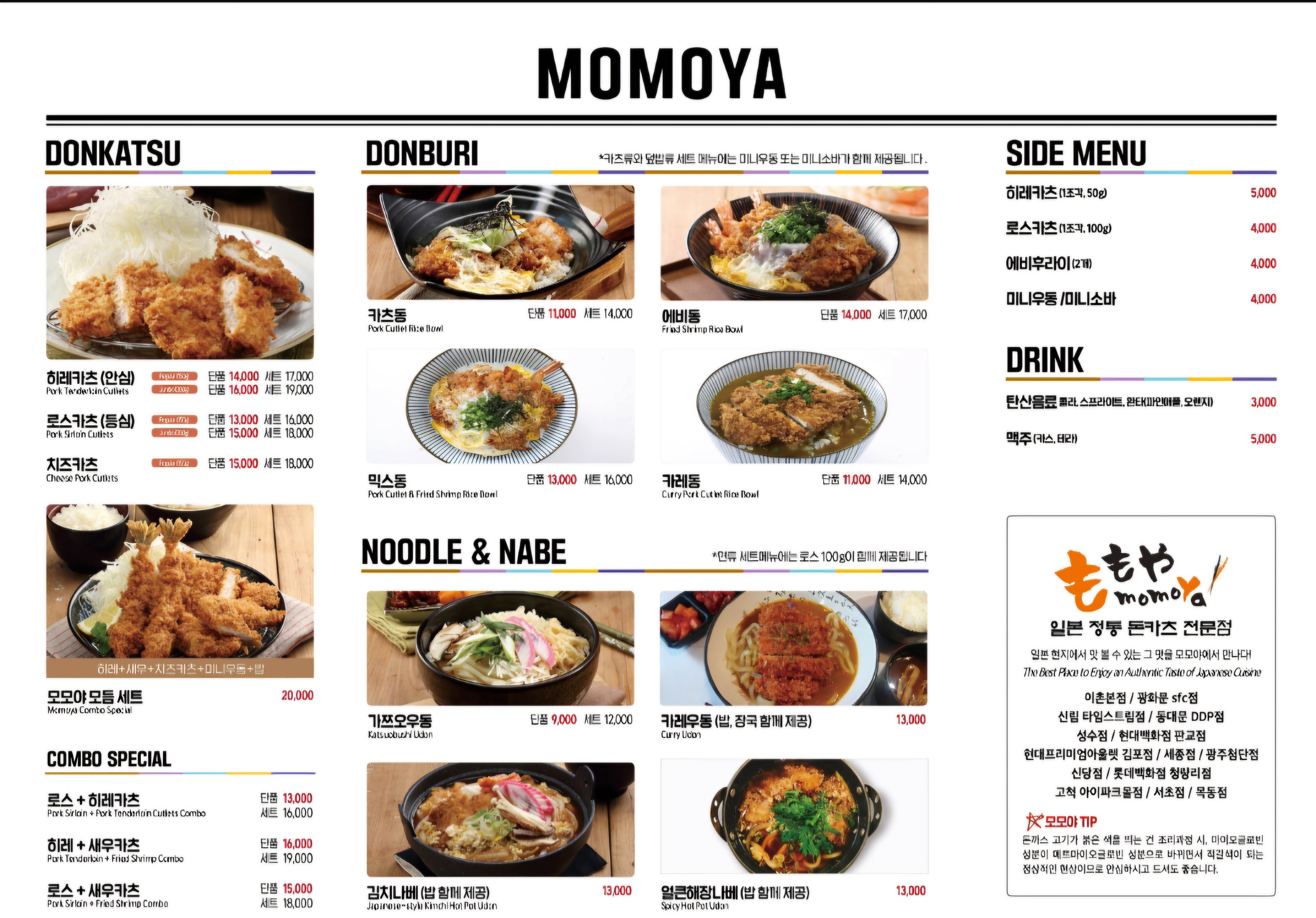 메뉴판(출처:모모야)