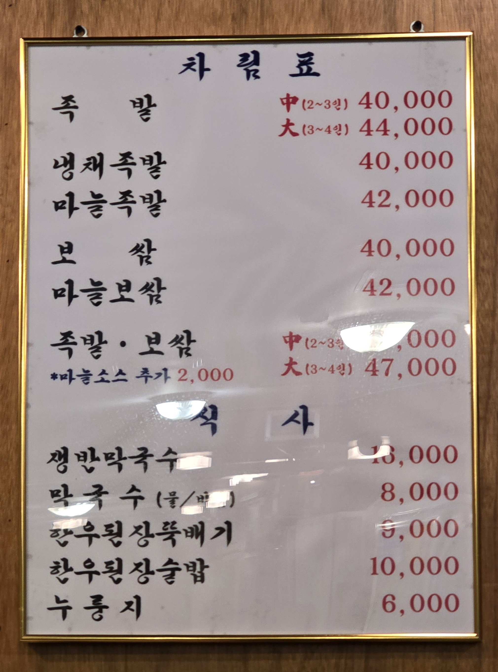 메뉴 : 족발, 보쌈, 마늘족발, 냉채족발, 부추전, 쟁반막국수 등