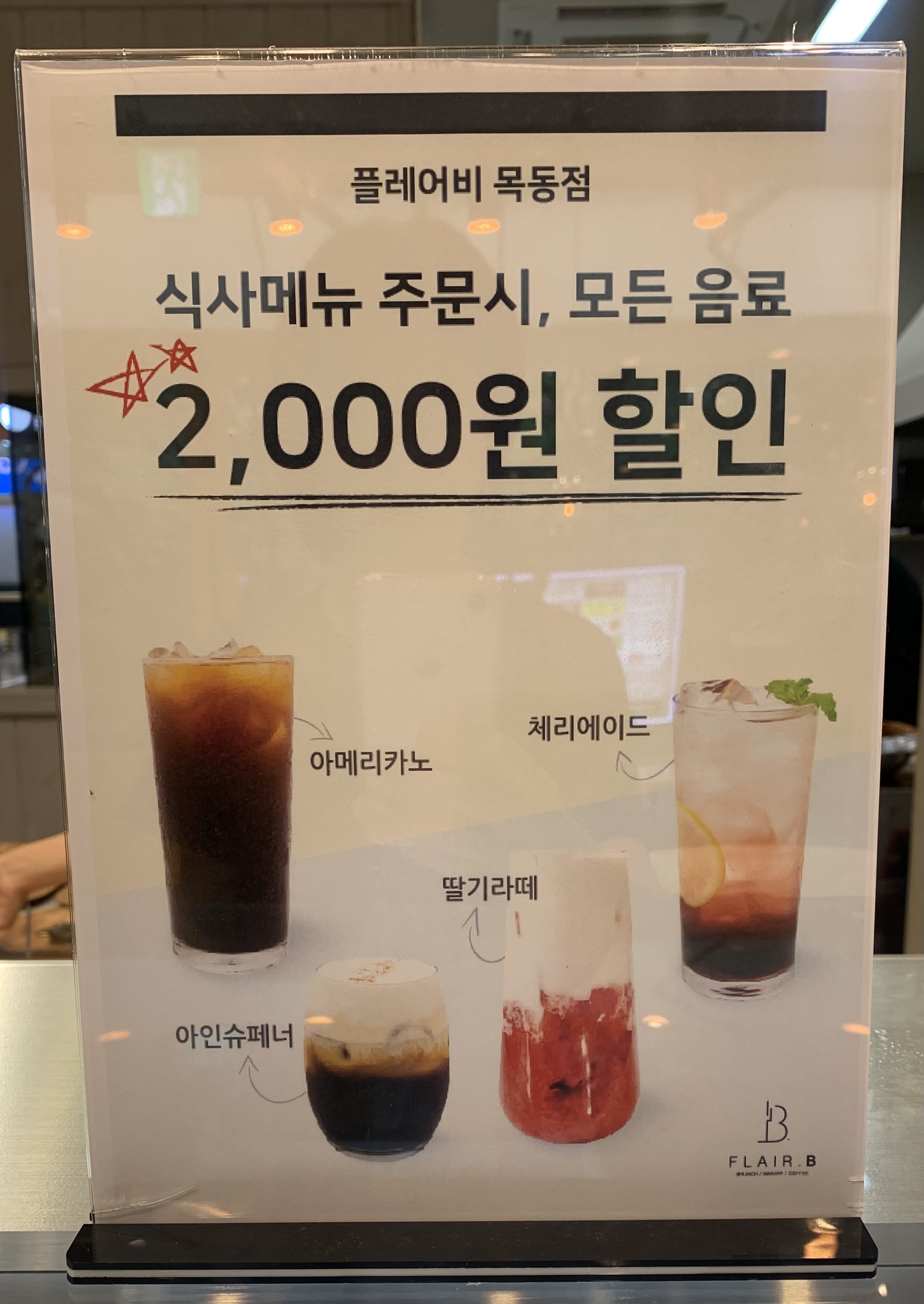 식사메뉴 주문시 음료할인 2000원도 가능하다.