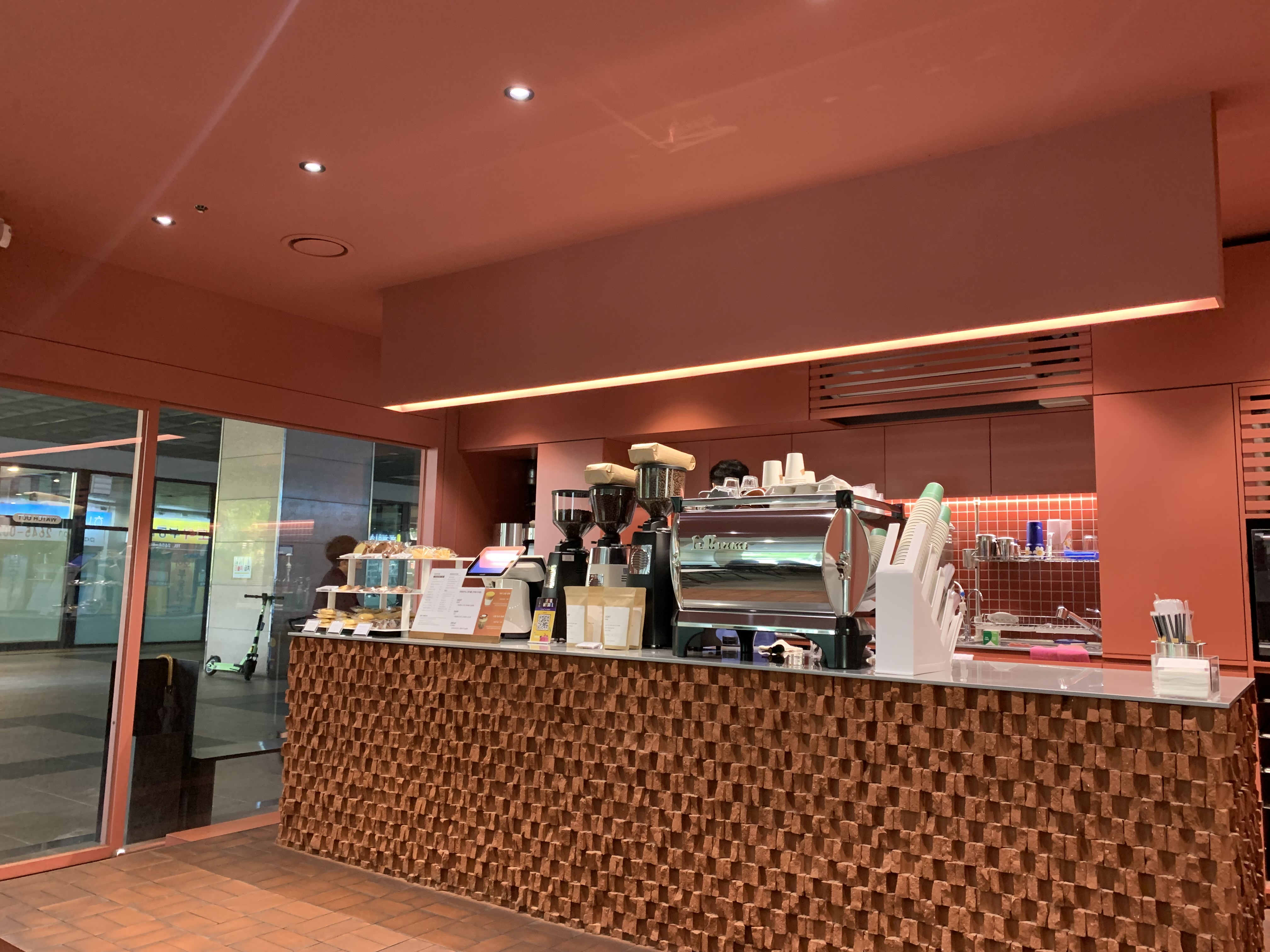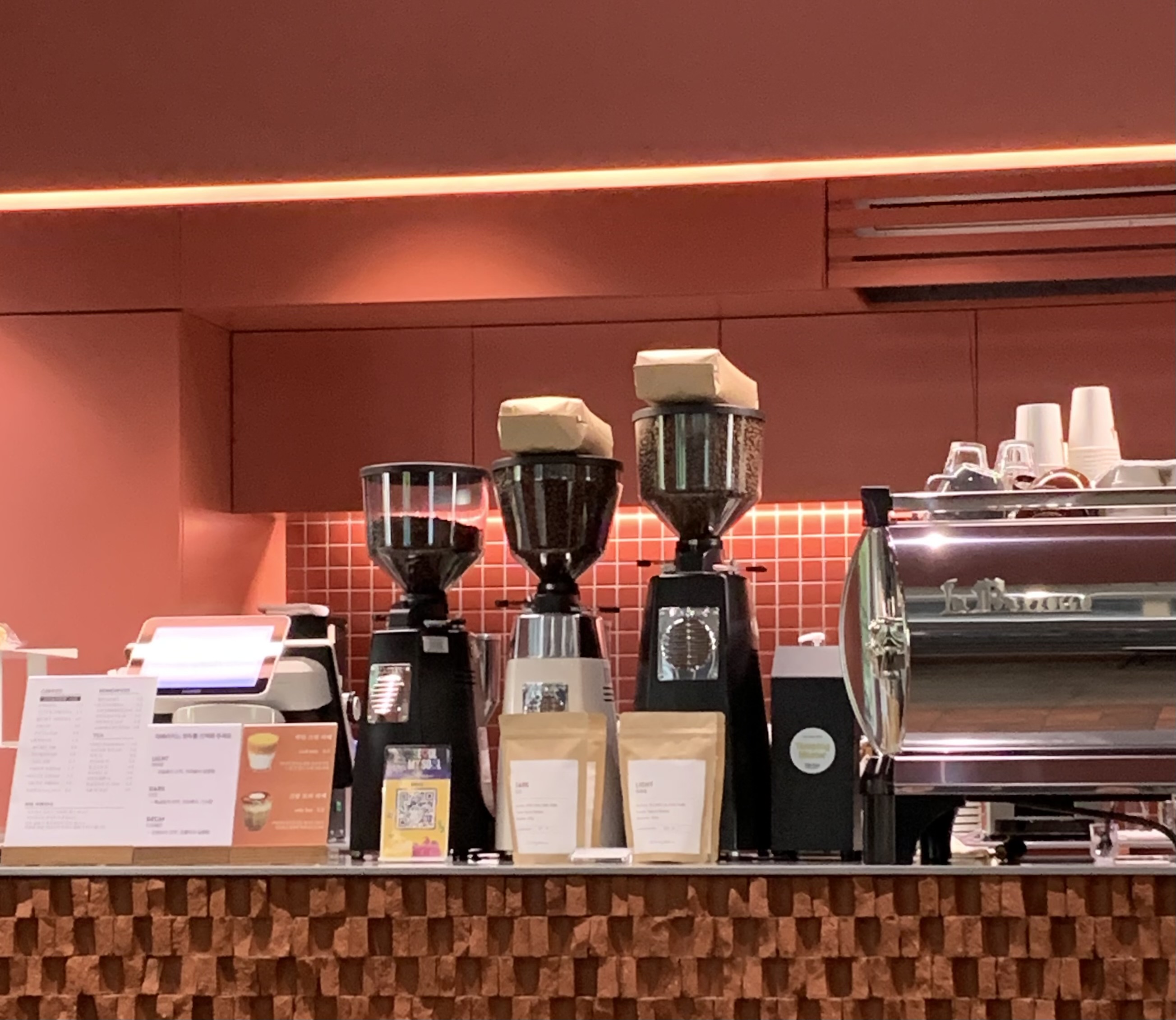 특히나 원두 그라인더를 손님 방향으로 배치한 점은