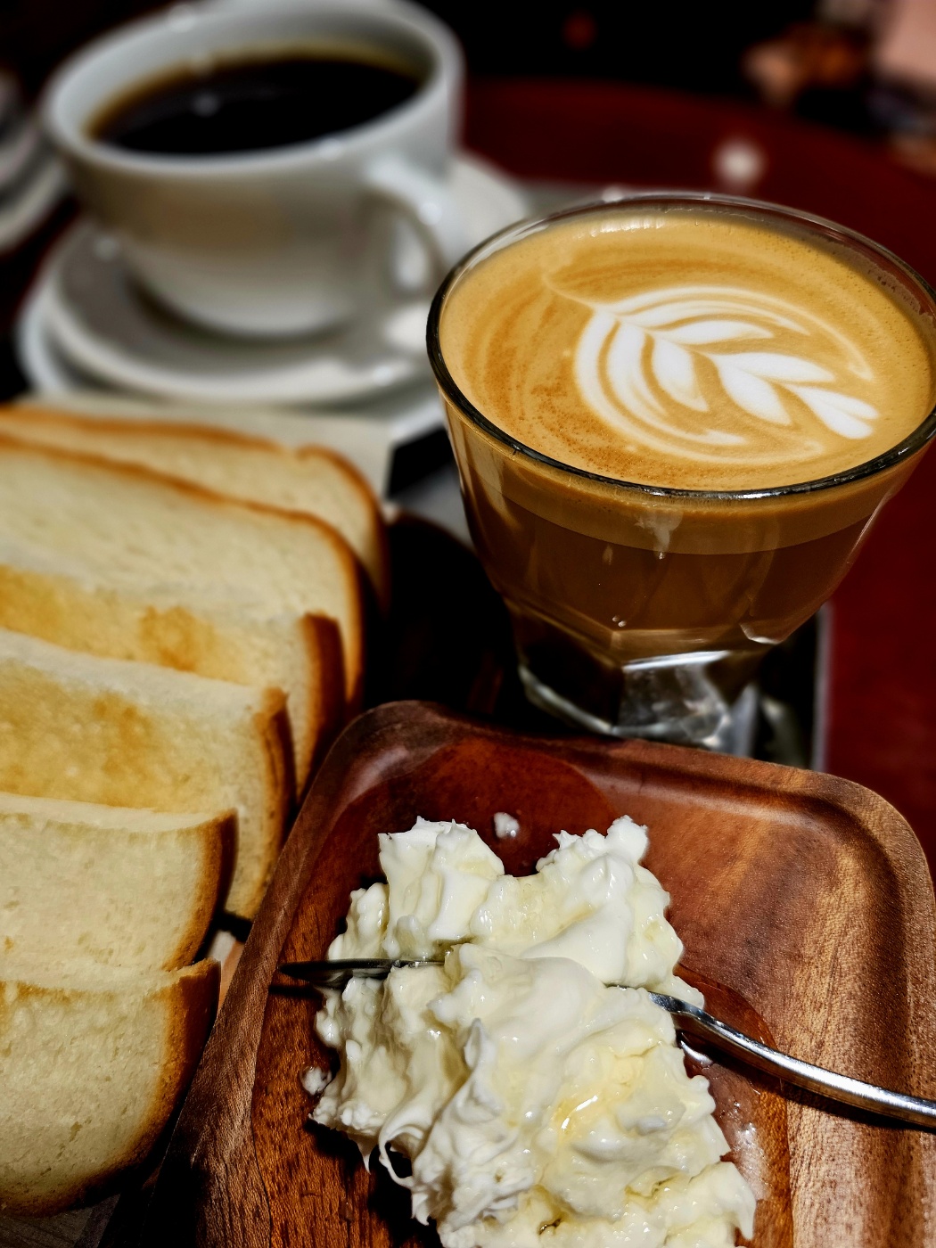 살짝 구운 식빵에 쫀쫀한 카이막을 발라서 한입 먹고,