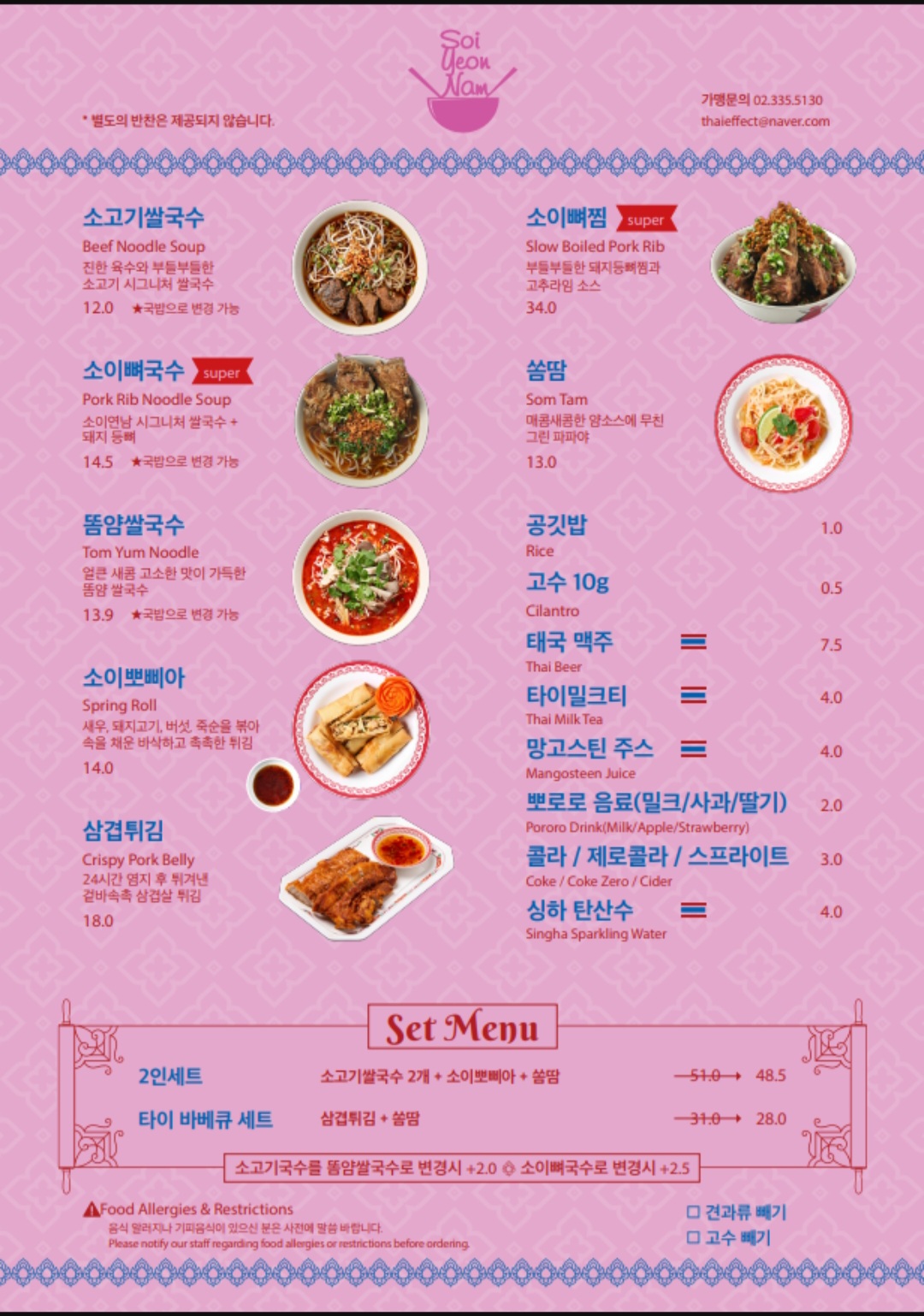 소이연남 메뉴(이미치 출처 : 소이연남)