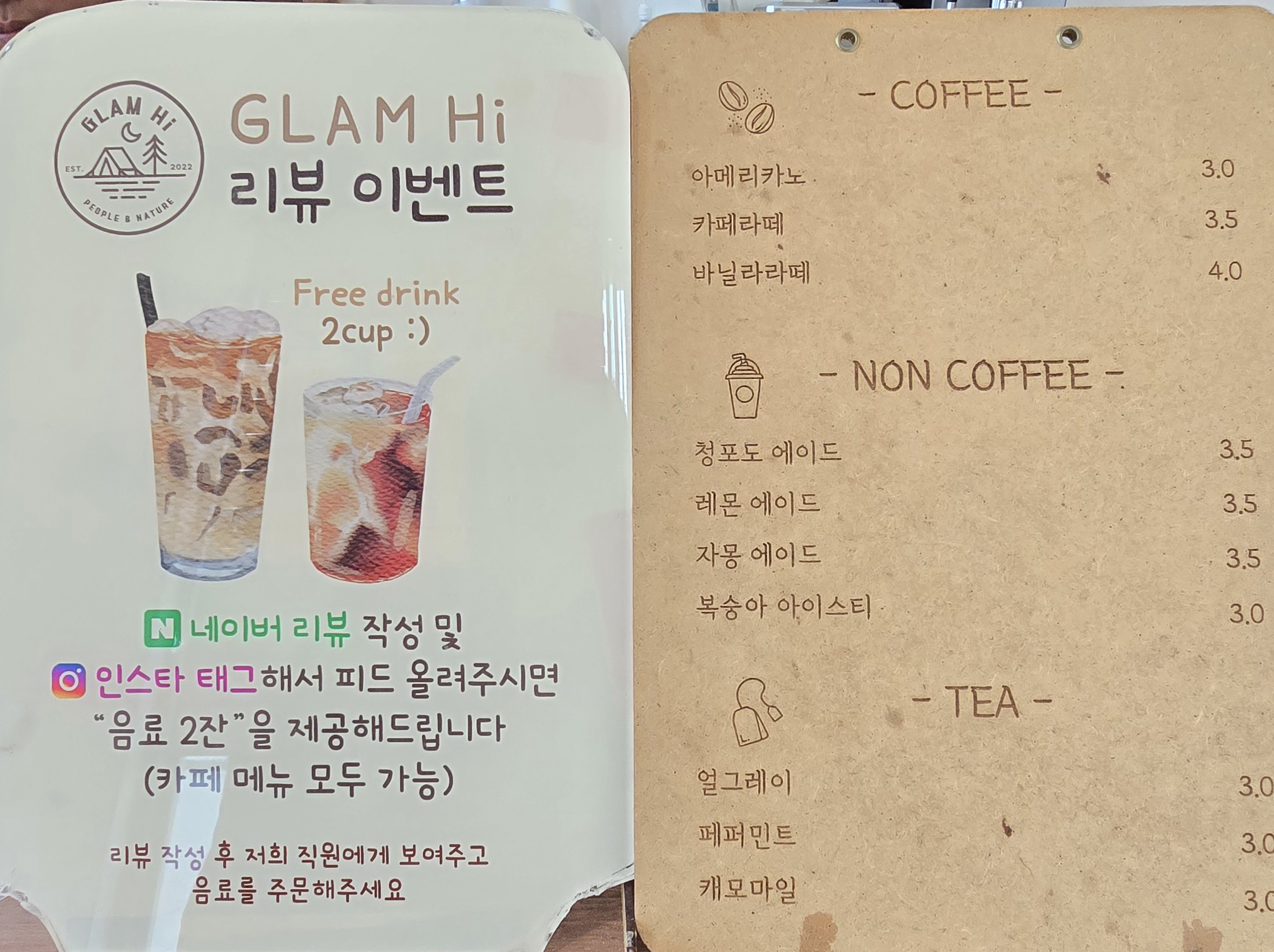 리뷰이벤트 홍보와 판매용 음료 가격