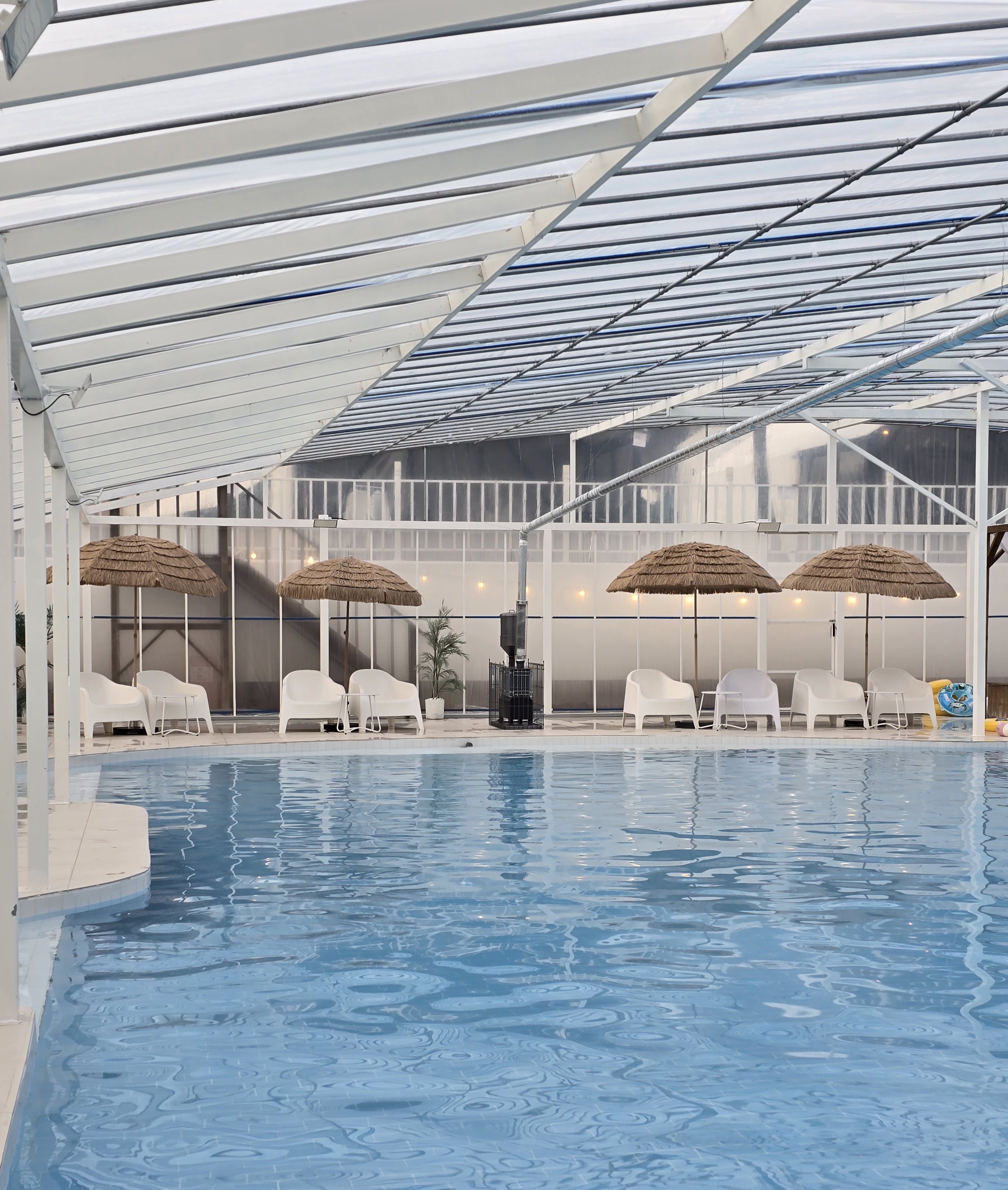 체크인 사무동, 온수 수영장