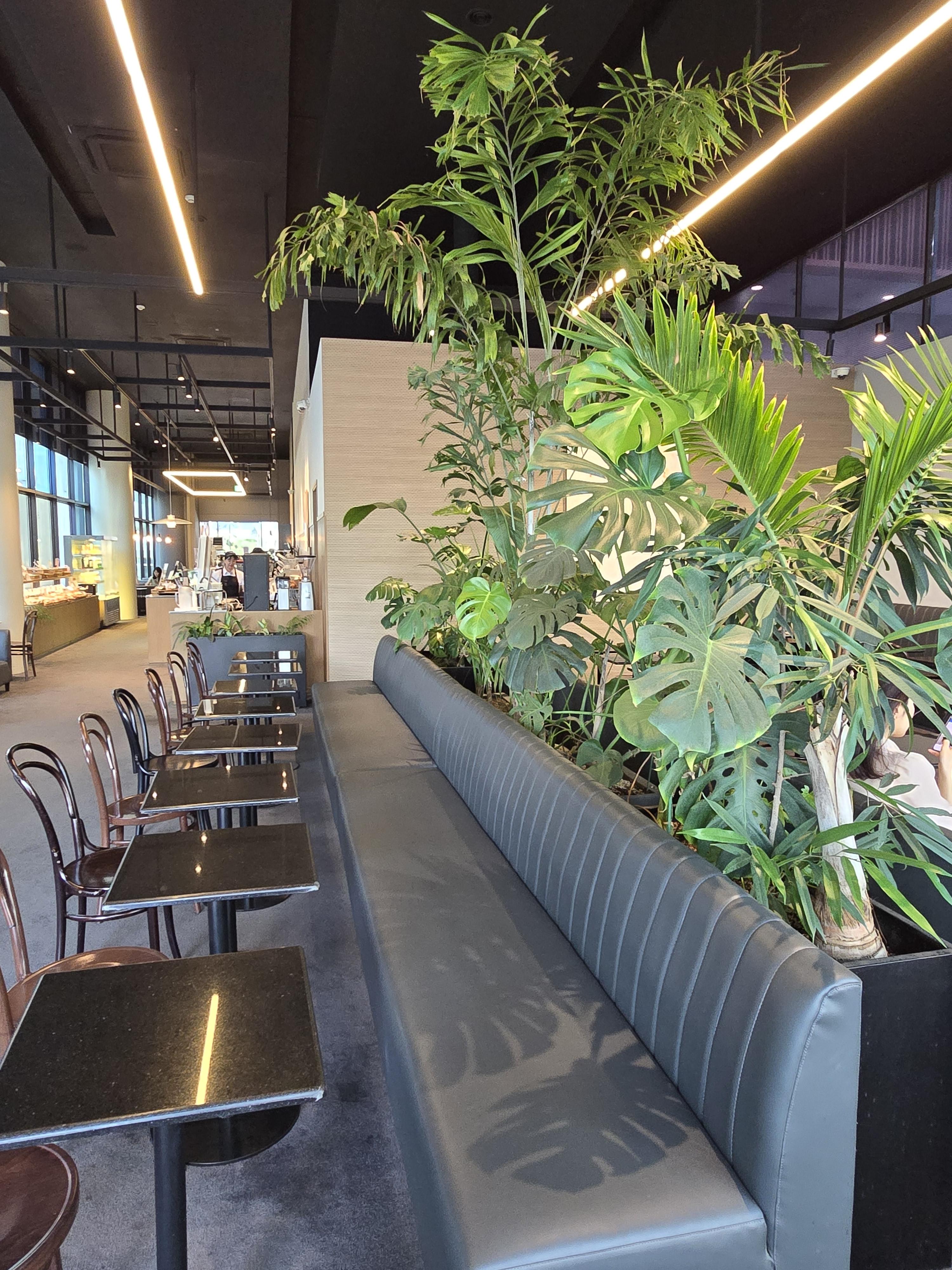 실내에 식물을 잘 배치해 공간 활용이 잘 되어 있다.