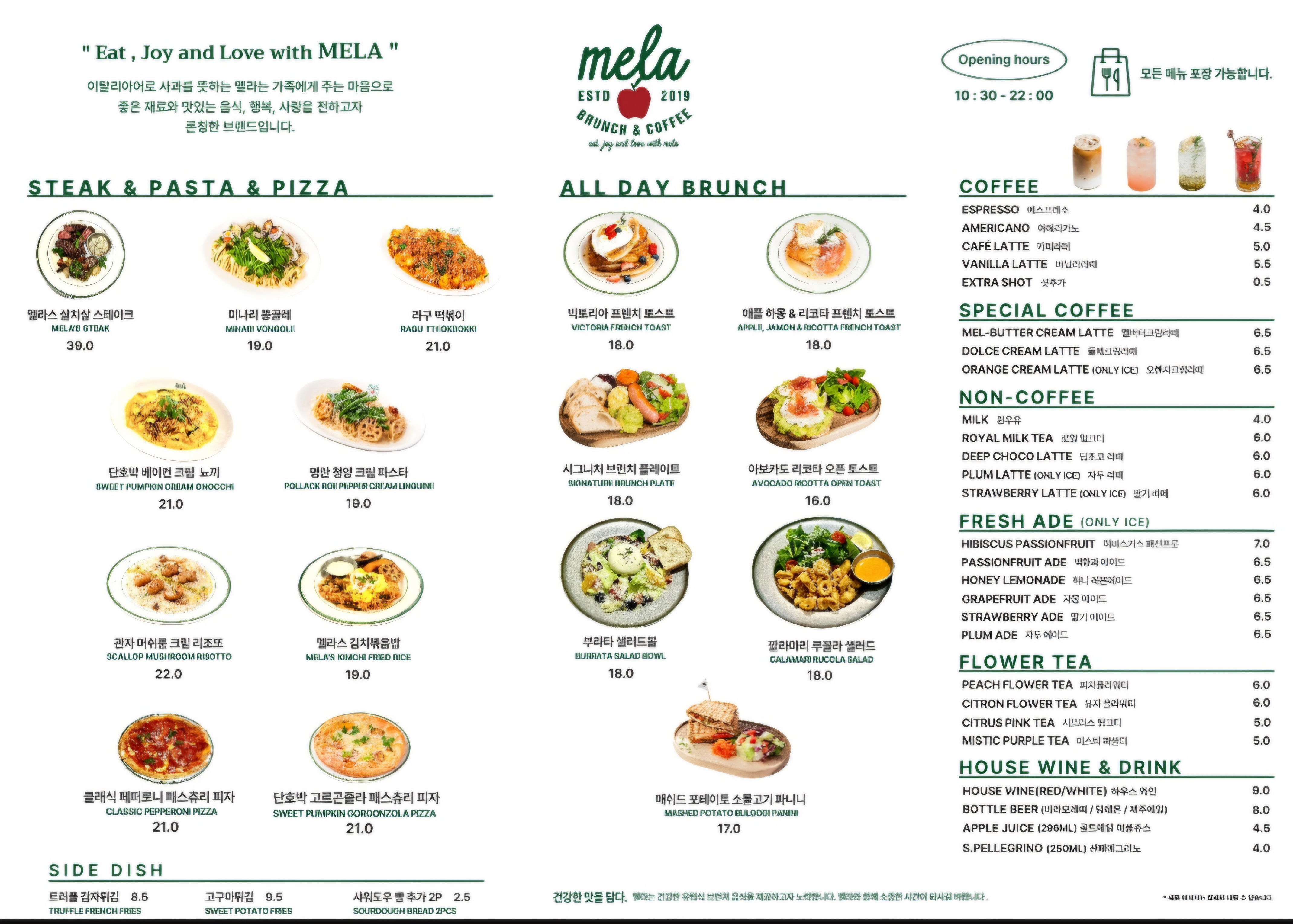 브런치카페 멜라는 영등포타임스퀘어점과 홍대점 2군데가 있습니다.
