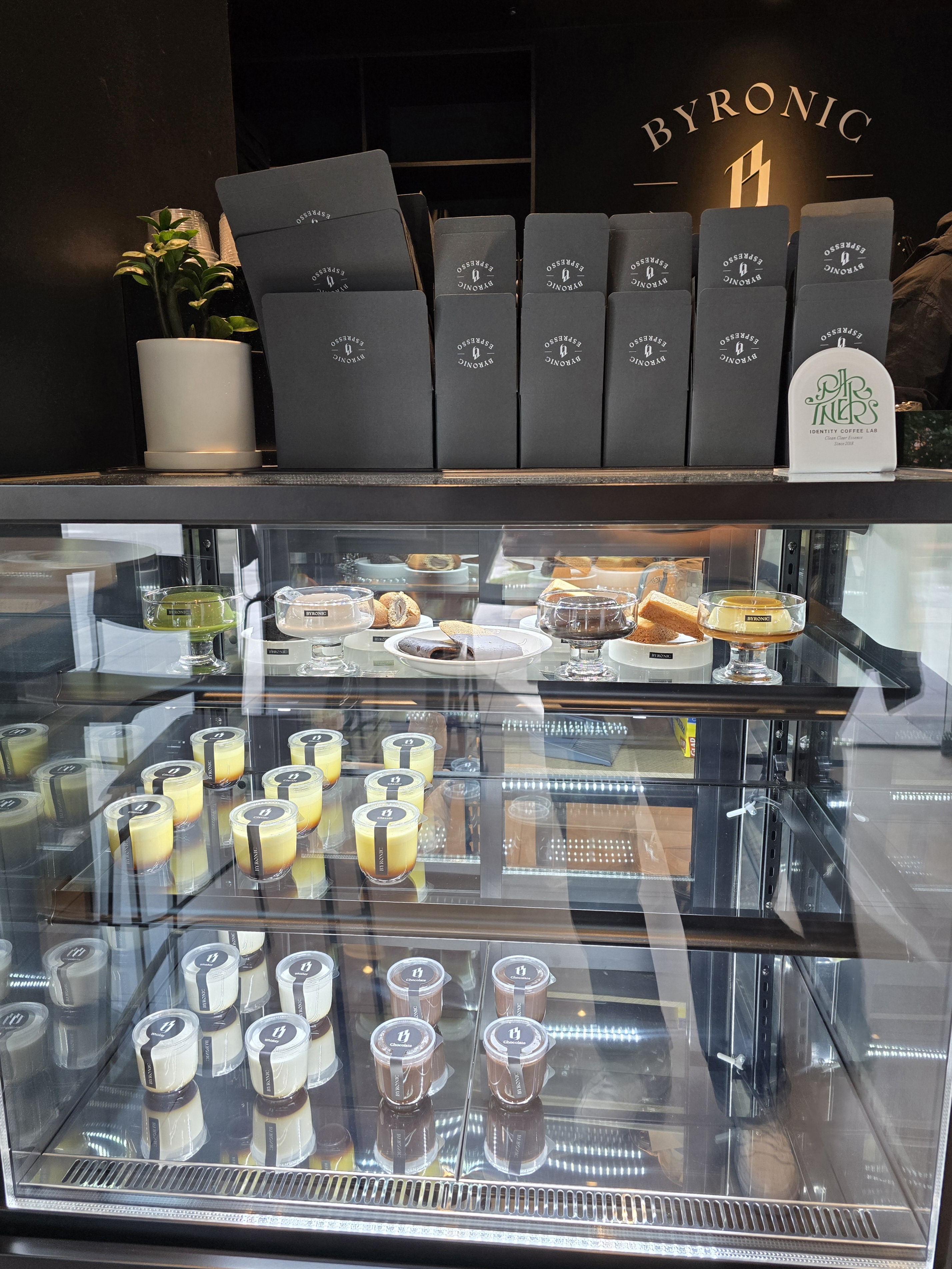 입구 정면에서 한눈에 보이는 디저트와 메뉴판도 심플한 분위기에 통일성이 있다.