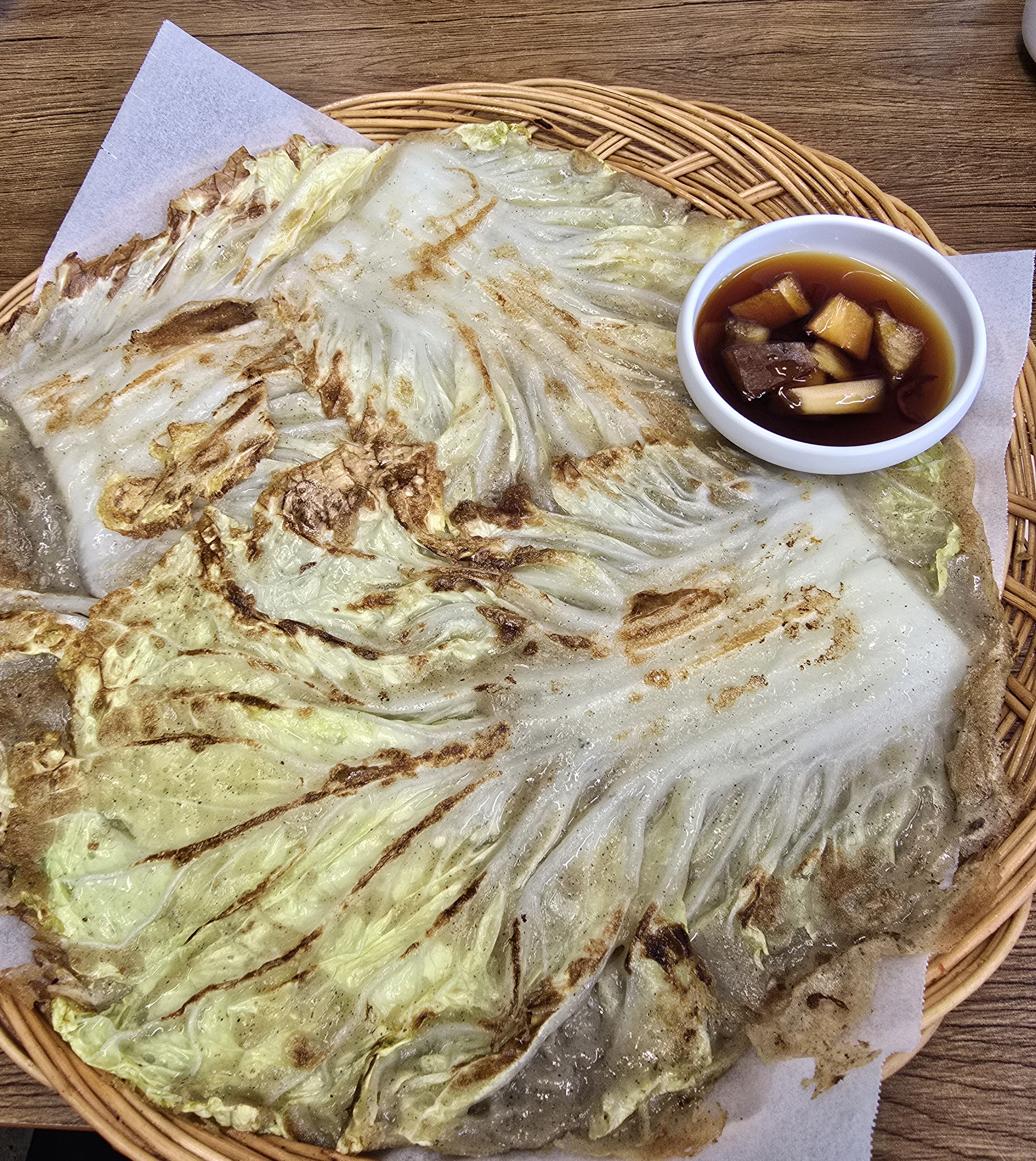 메밀반죽을 살짝 묻혀 지져낸 배추전은 슴슴하니