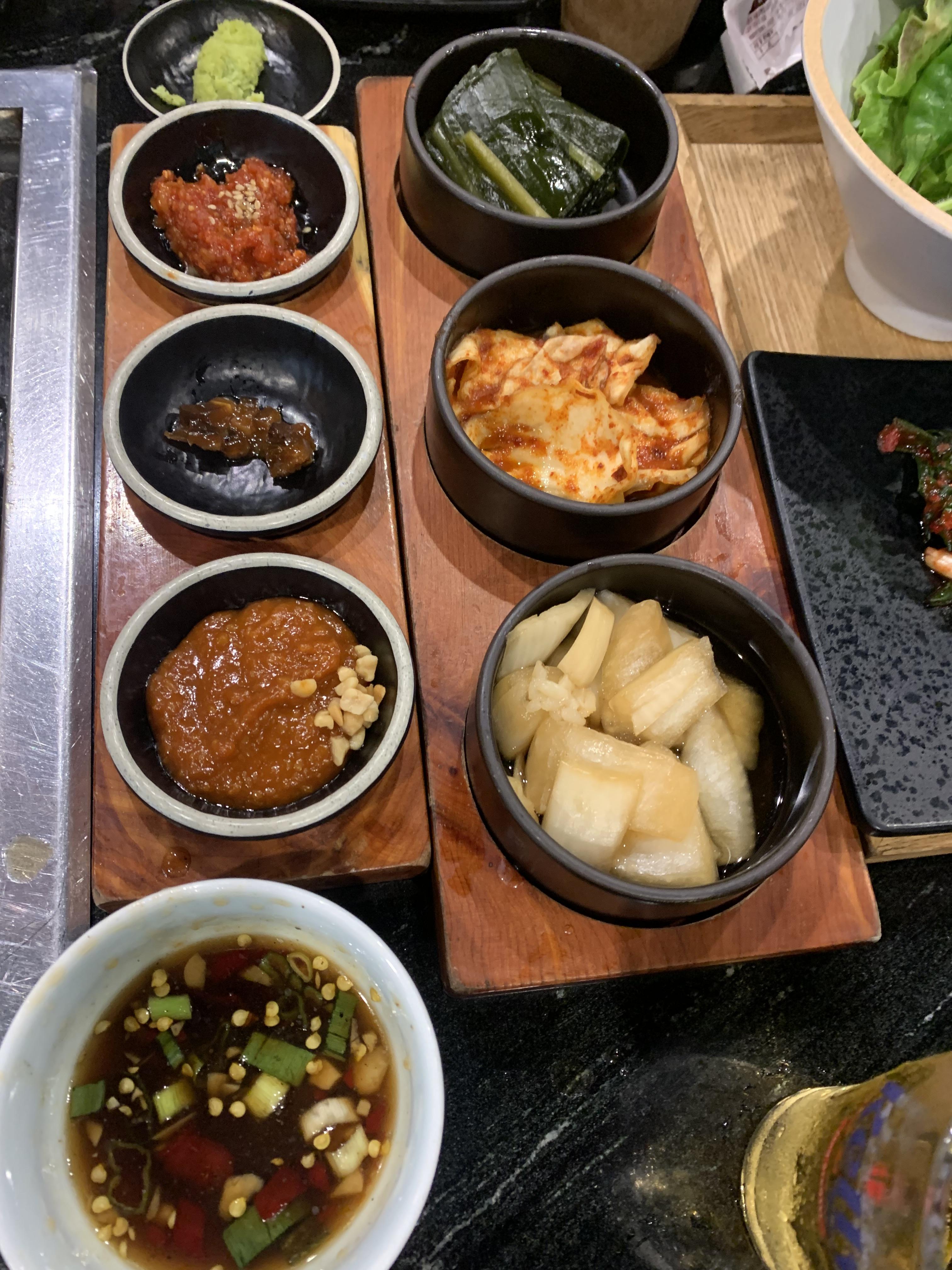 고추냉이에 고기 또는 젓갈밥에 김을 싸 먹었는데