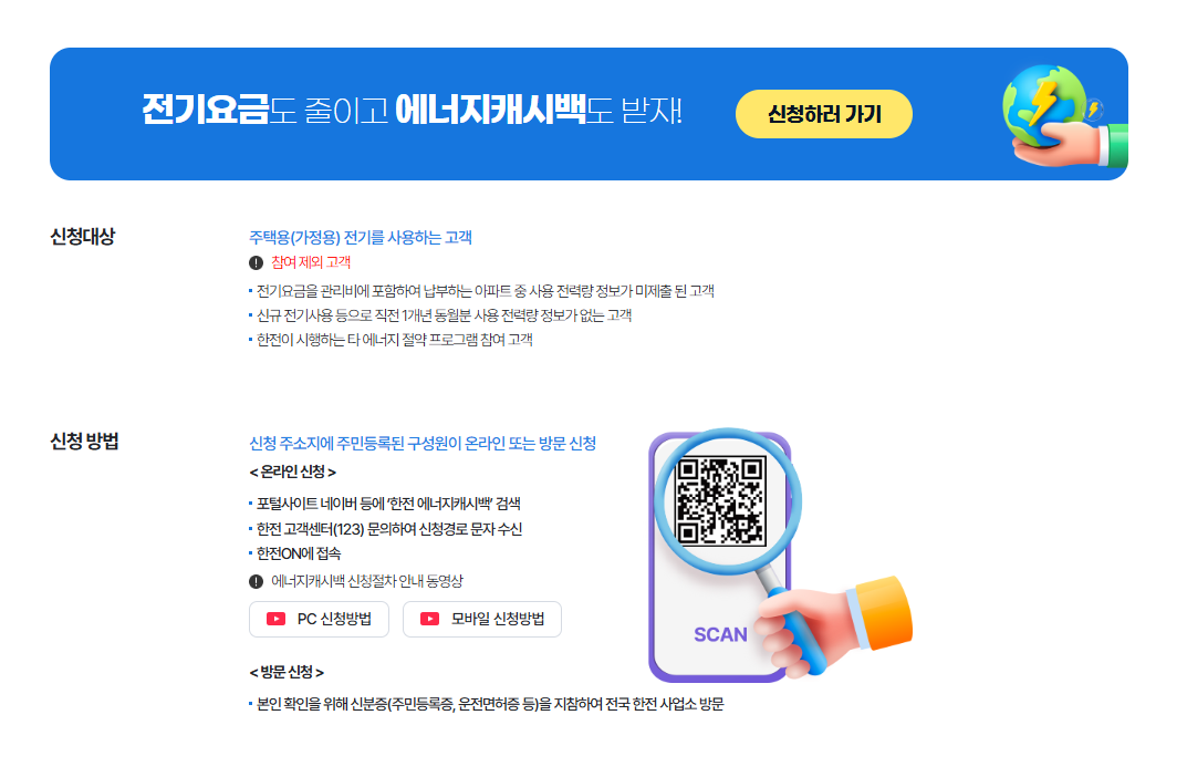 아직 신청하지 않으신 분들은 지금 바로 한전 에너지 캐시백 홈페이지를 방문해 보세요!