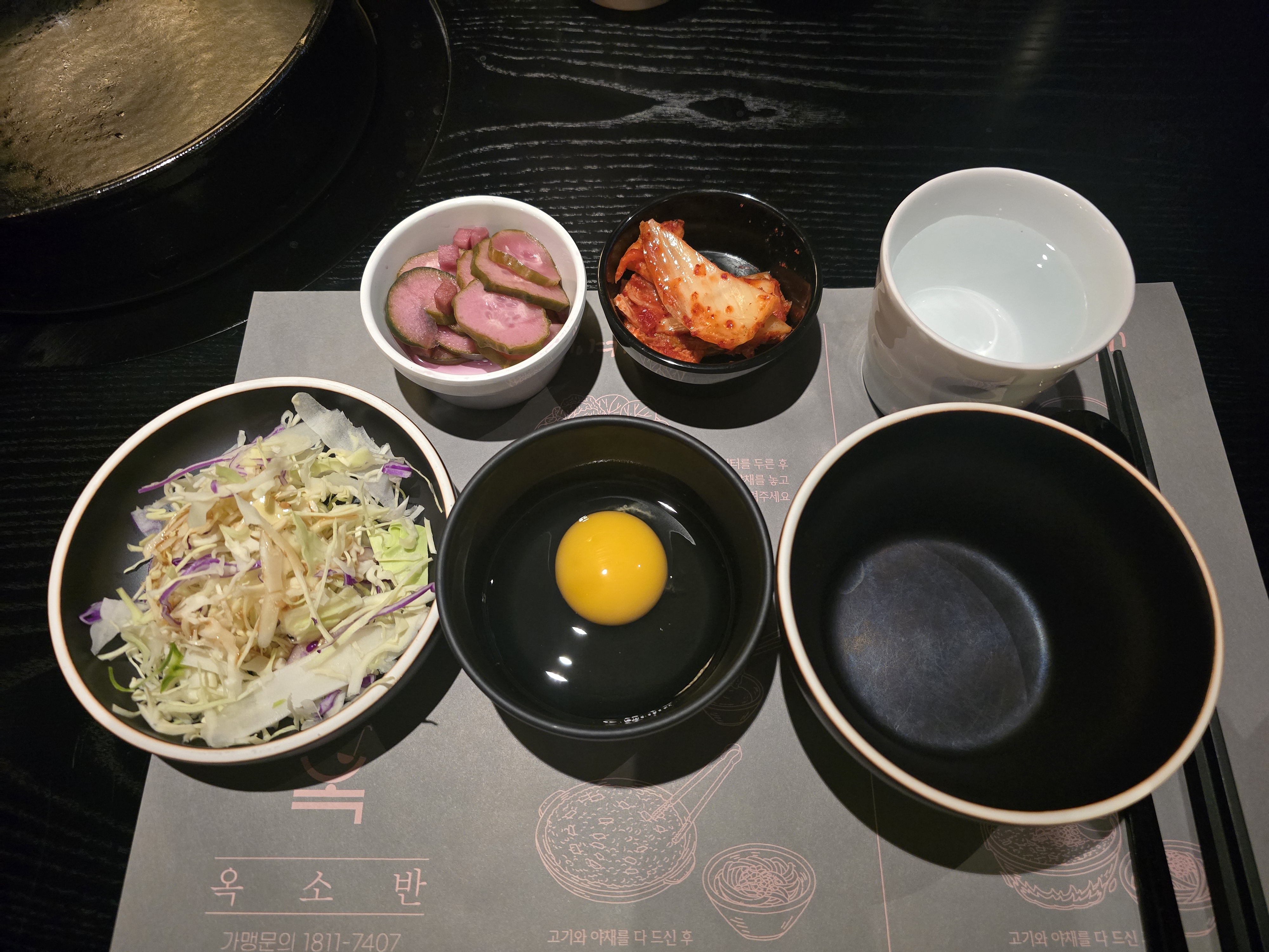 날달걀을 소스처럼 찍어 먹으라 하나 내 취향은 아니라 마지막에 프라이 하듯 먹어줬다.