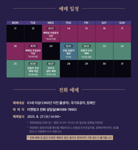 당첨자 우선 예매 기간: 8월 22일(금) 14:00 ~ 8월 26일(화) 23:59