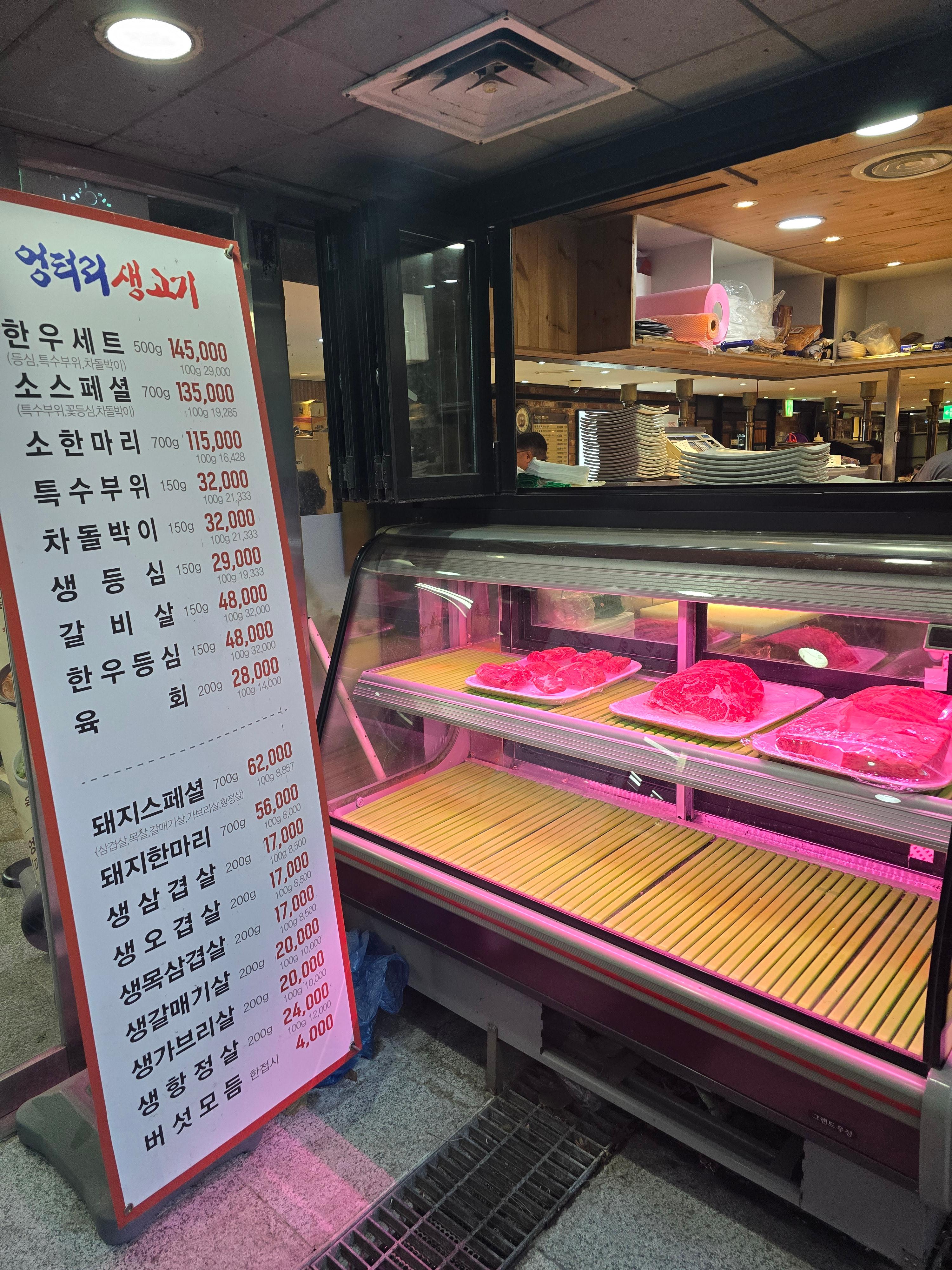 정육식당 이름에 걸맞게 입구에서 생고기들이 맞이해주고,