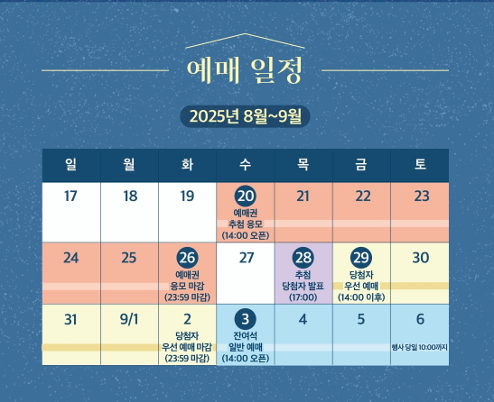 | 잔여석 일반 예매 | 2025년 9월 3일(수) 14:00~ | 추첨 후 남은 좌석에 한해 선착순 예매 |