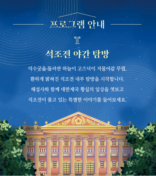덕수궁 밤의 석조전은 단순히 야간에 궁을 개방하는 것을 넘어, 해설사와 함께 석조전 내부를 탐방하고,