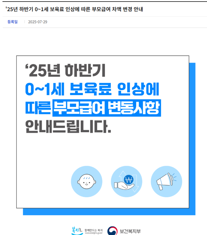 2025년 하반기(7월 이후)부터 영아 보육료가 5% 인상되면서 부모급여의 '차액'에 변동이 생깁니다.