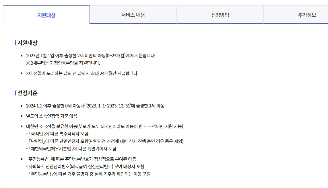 - 지원대상: 2023년 1월 1일 이후 출생한 아동 (0~23개월)