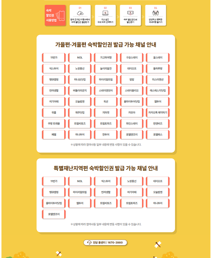가을·겨울편 숙박 할인쿠폰 발급 채널