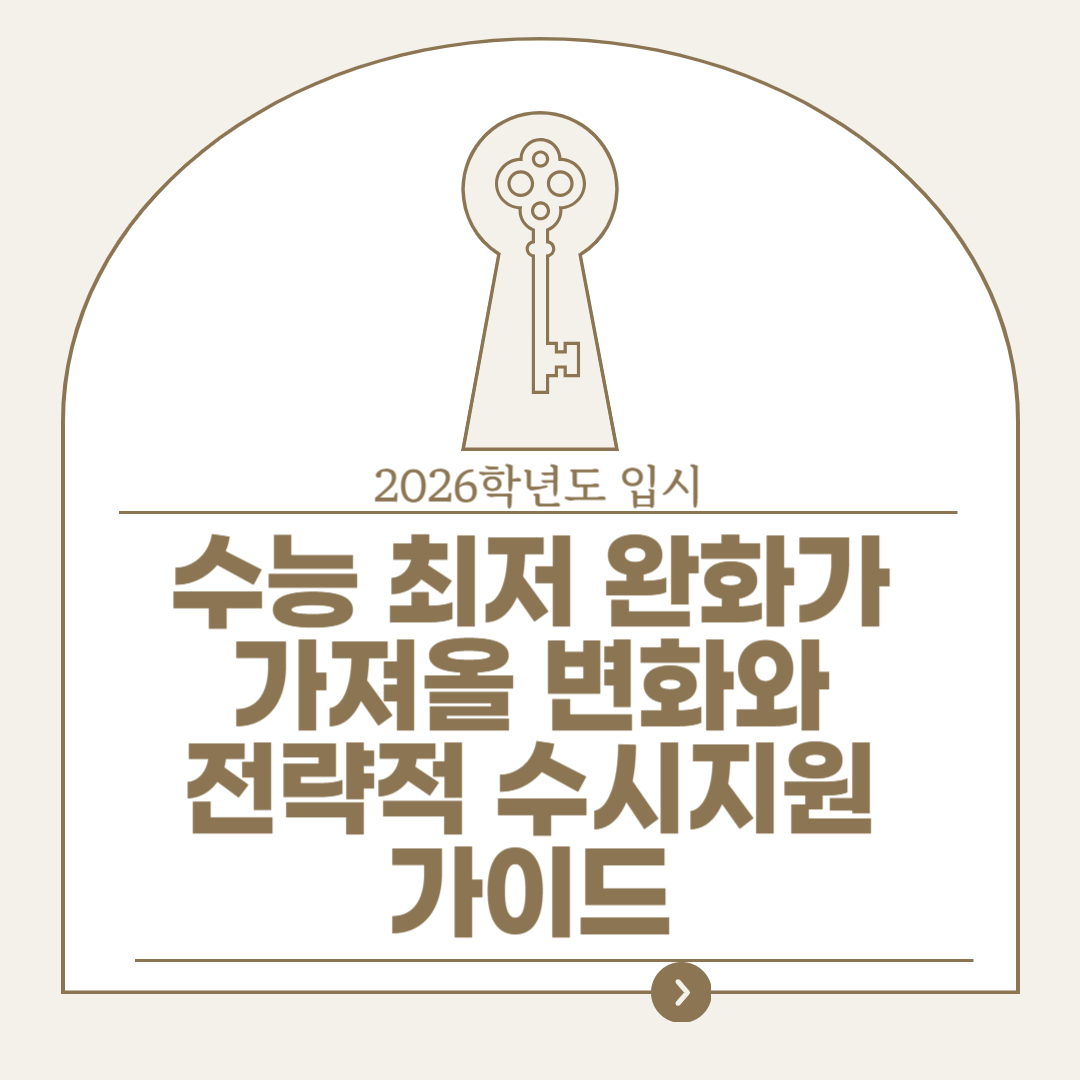 2026학년도 대입 수시 모집은 전년도와는 확연히 다른 양상을 보일 것으로 예상됩니다. 가장 큰 변화는 바로 수능 최저학력기준의 완화입니다. 이는 수험생들에게 기회가 될 수도 있지만, 동시에 예상치 못한 경쟁 심화를 가져올 수 있어 전략적인 접근이 필수입니다. 오늘은 주요 대학들의 최저 완화 사례를 살펴보고, 이에 따른 입시 변화와 함께 등급별 수시 지원 전략까지 상세히 분석해 드리겠습니다.